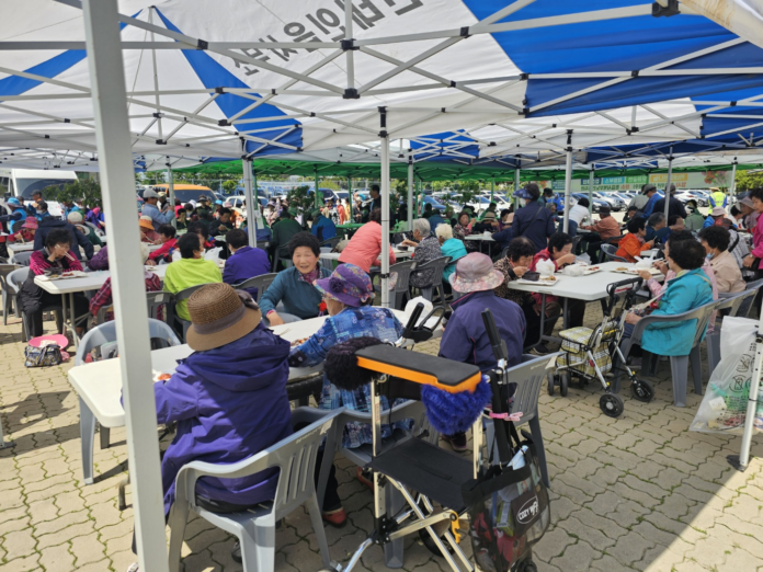 흰쌀밥을 비롯해 홍어회가 포함된 점심식사를 맛있게 드신 어르신들은 “밥도 맛있고, 사람들도 많아서 참 좋았다”고 입을 모아 칭찬했다.