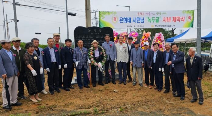 은희태 시인의 시비 제막식이 7월 10일, 고부면 남복리 산 19-5에서 (사)한국문인협회정읍지부 주관으로 성황리에 개최됐다.