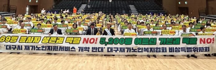 대구재가노인복지협회는 “대구시가 현장 목소리를 경청하지 않고 독단적으로 결정, 일방적으로 통보한 것 자체가 현실을 외면한 탁상행정”이라고 규탄했다.
